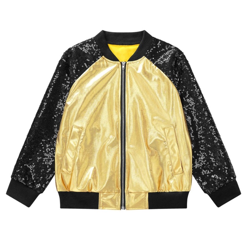 Kids Girls Shiny Sequins Zipper Bomber Jacket Hip hip Zipper Coat Outerwear