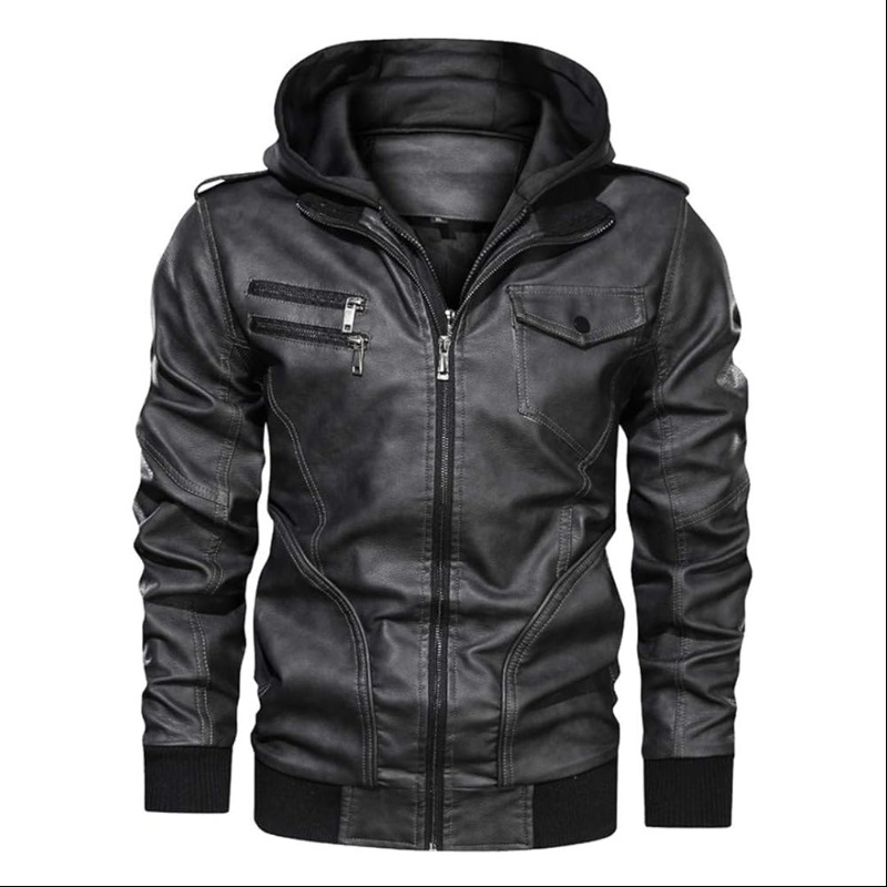 Men Casual Retro Motorcycle Leather Jacket Winter Hooded Jacket